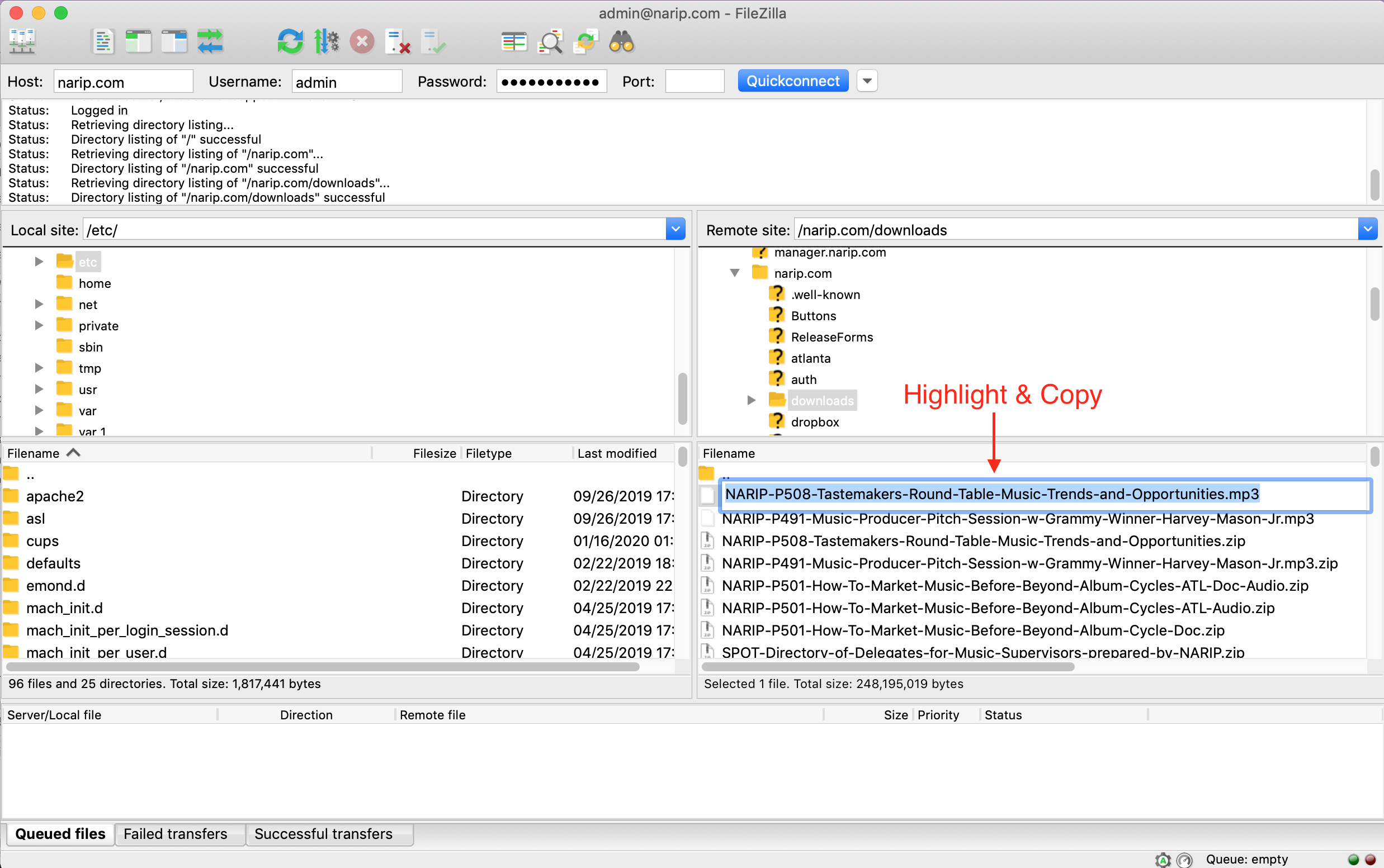 • To do this, go back to FileZilla and copy the name of the file Screen Shot 2020-02-07 at 12.12.53 PM